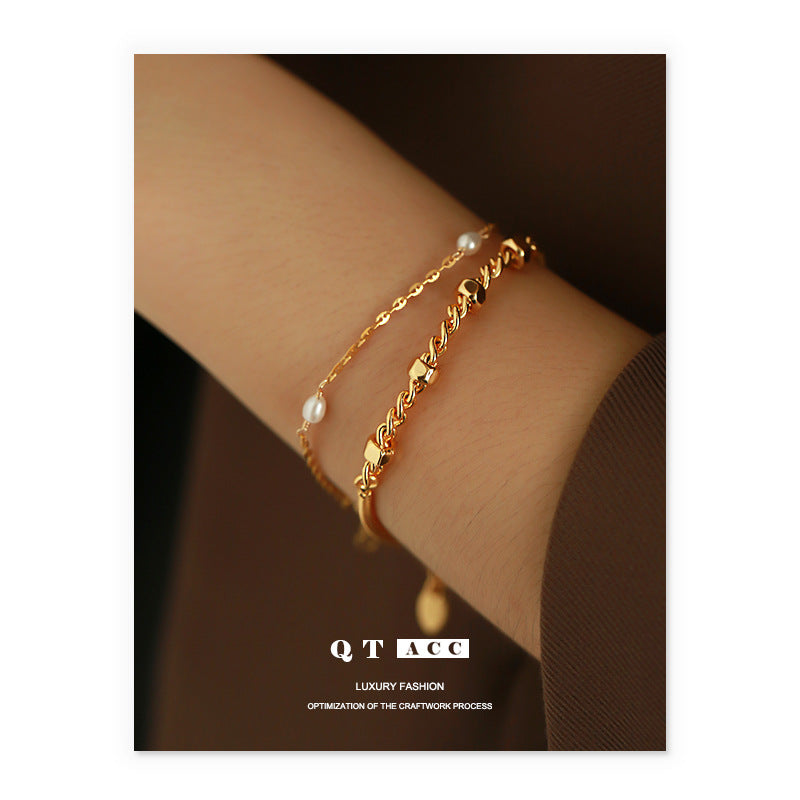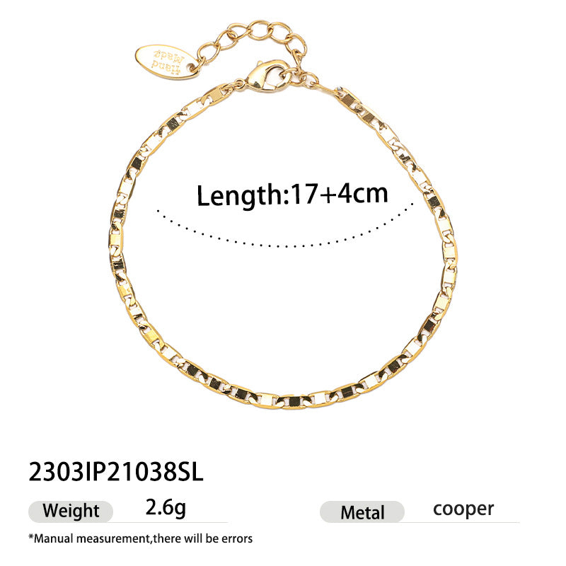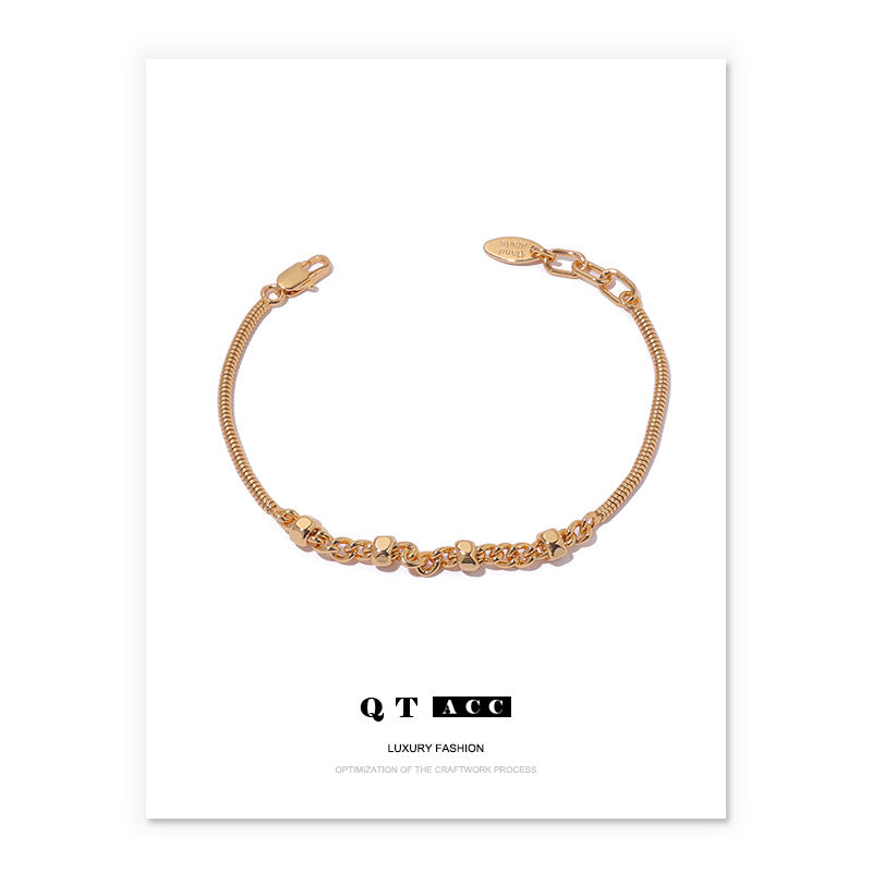 Brass plated 18K real gold ins simple style design nut shape snake bone chain splicing bracelet bracelet jewelry women