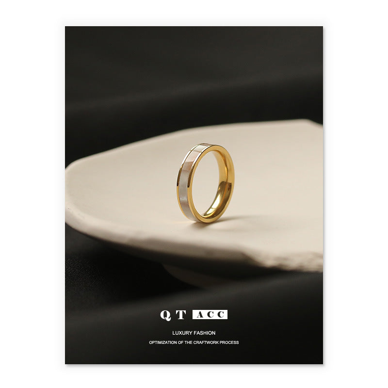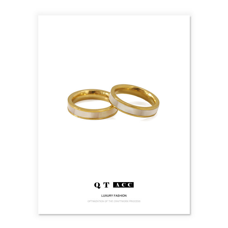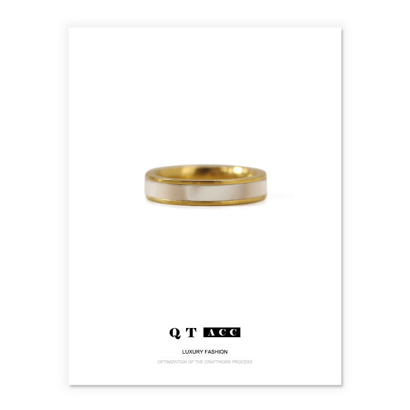 High color retention vacuum plating real gold natural shell jewelry Korean retro Internet celebrity titanium steel French mother shell ring female