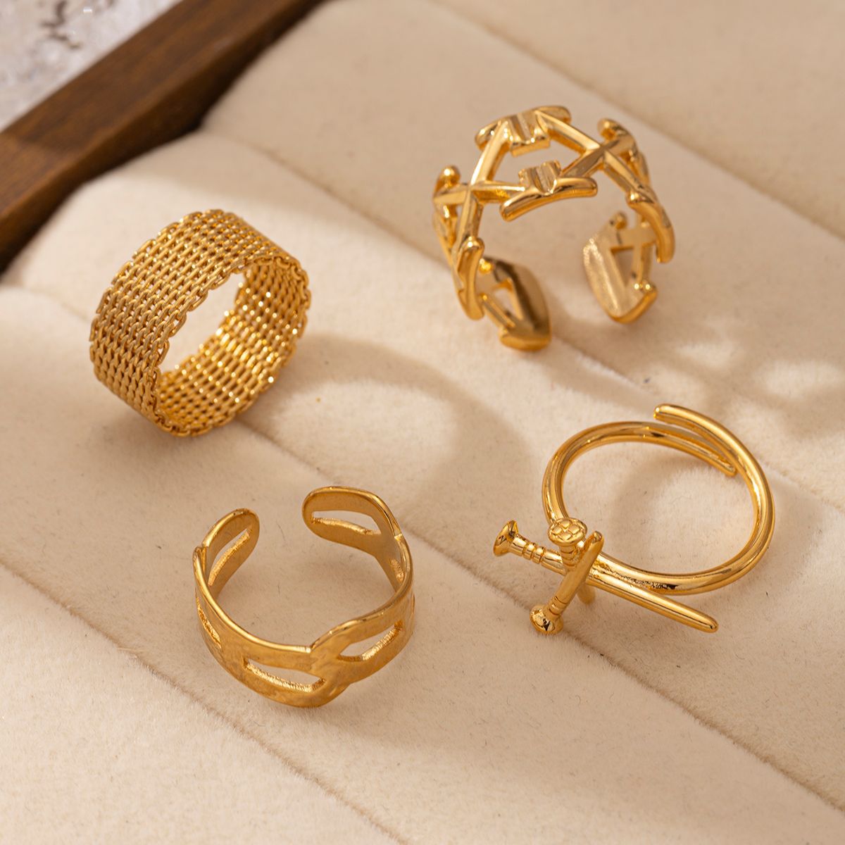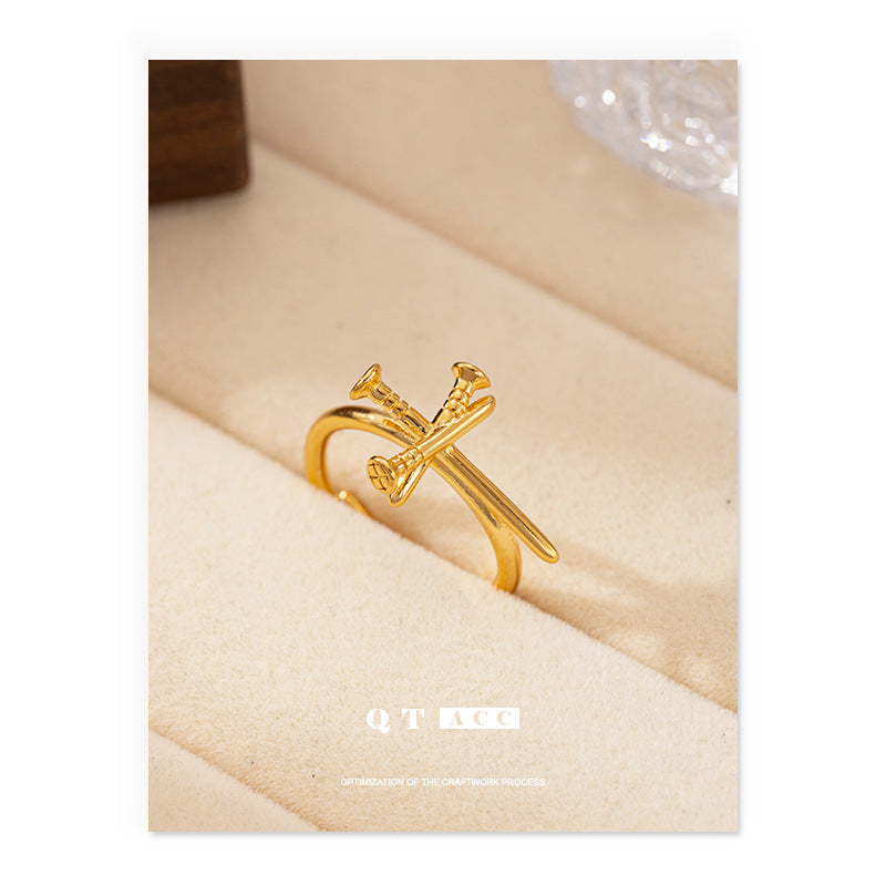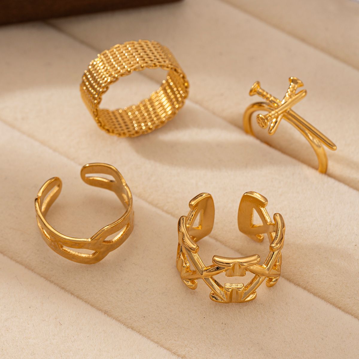 European and American French light luxury high sense irregular lines hollow ring simple and unique retro style versatile ring